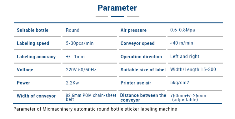 Ushbu mashina dumaloq idishlarni to'liq tsiklli va yarim tsiklli yorliqlash uchun ishlatilishi mumkin bo'lgan yumaloq shisha etiketkalash mashinasiga tegishli va u turli o'lchamdagi yumaloq idishlar, dumaloq idishlar, dumaloq shisha kabi etiketkalar uchun keng qo'llaniladi. , kosmetika, oziq-ovqat, dori-darmon, kundalik kimyoviy va boshqa engil sanoatdagi yumaloq qutilar. Uskunalar tarkibi: elektr shkafi, tashish mexanizmi, alohida shisha moslama, rolikli yorliq moslamasi, cho'tka yorlig'i moslamasi, 1 ta yorliqli dvigatel, operatsion tizim va boshqaruv tizimi.